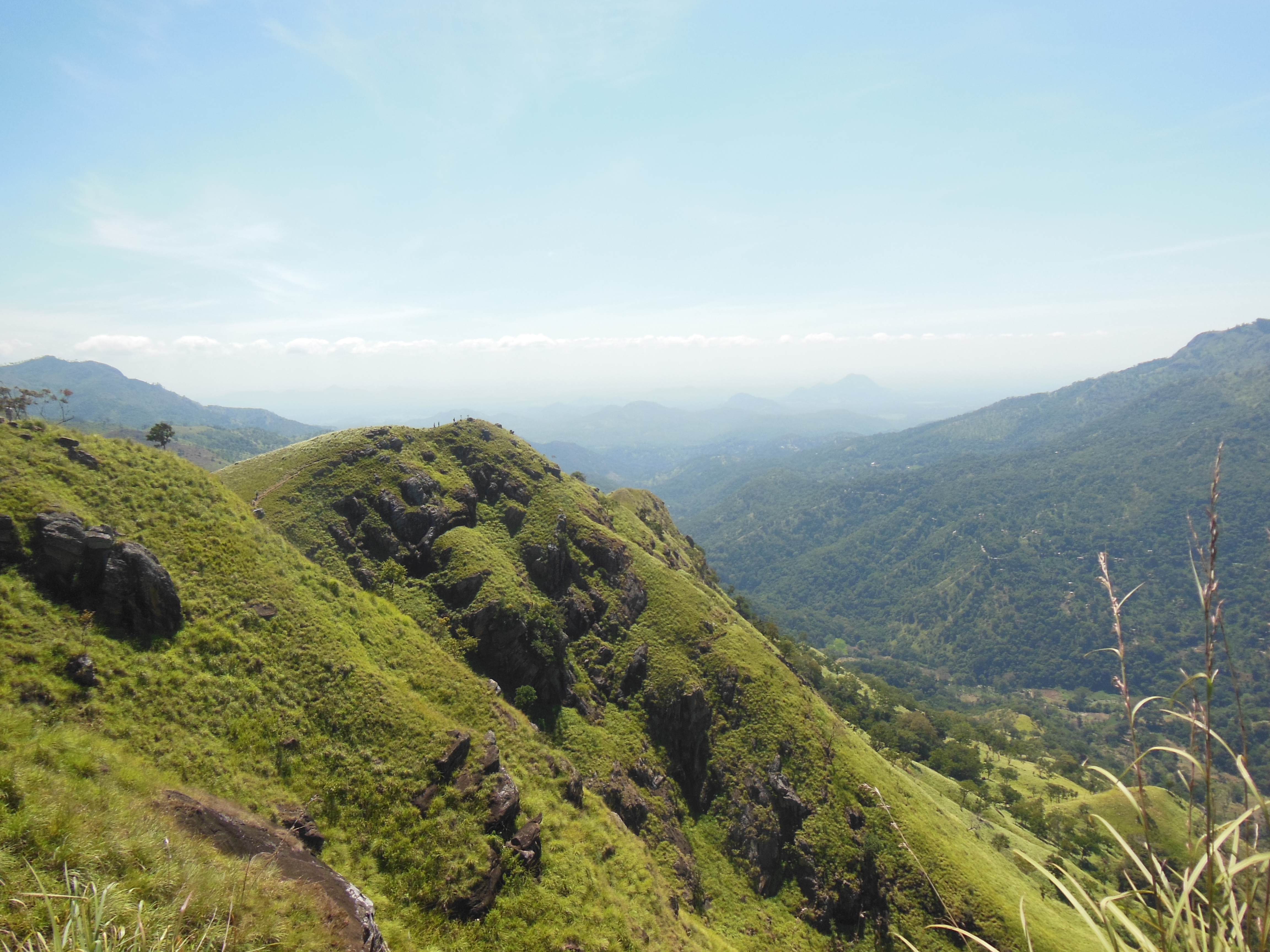 Ella is een voor de toeristen gebouwde miniatuurstrip in een bergachtige omgeving, met enkele winkeltjes, restaurants en kleine hotels. We bereiken het plaatsje per trein en vinden een mooie overnachtingsplek. We verkennen het gebied. Een pittige klim wordt beloond met een ver uitzicht. De bergen lijken met groen fluweel overtrokken. Tamils plukken bladeren op de theeplantages. Net over het middaguur meander ik per mountainbike over de smalle wegen naar beneden de diepte in. Een oude Indiase vrachtauto parkeert langs de weg. De bestuurders eten rijst, ze zwaaien. Een restant belandt in de berm, waar een aantal apen al gretig wacht. Ook enkele zwerfhonden doen een hap naar de rijsttafel. Het wordt druk langs de weg. Een paar kilometer verder staat opnieuw een grote bus geparkeerd. Erlangs een grote aluminiumketel met rijst, op een groot vuur gekookt. Ook hier primaten die belangstellend toekijken. Even later tilt een man zijn sarong omhoog en doet aan de overkant in de berm zijn gevoeg.