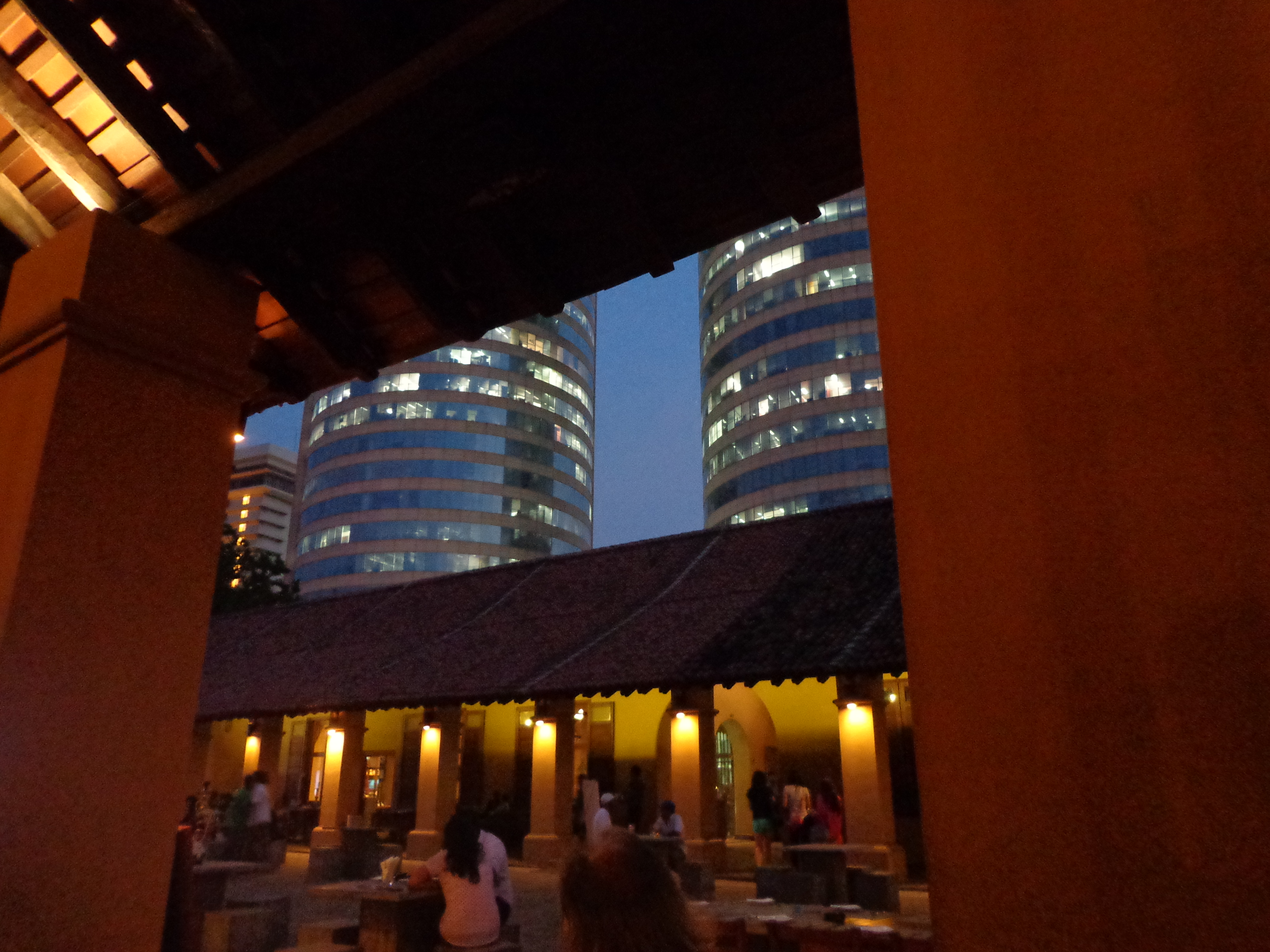 Op het binnenhof van het Dutch Hospital, door de Hollanders in de 18e eeuw gesticht, zijn terrassen geplaatst, klinkt dance en heeft het bedienend personeel het druk met het uitserveren van cocktails en gerechten. Het complex is volledig gerenoveerd, mooi, tegen de achtergrond van de verlichte glazen cilinders van het WTC, die bij het vallen van de schemer torenen op de achtergrond. Weinig is nog origineel aan het oorspronkelijke hospitaal. Er zijn restaurants gevestigd en een winkelgalerij, volgens westerse prijzen in een westerse setting. Niet ver ervandaan liggen zwervers op straat.
