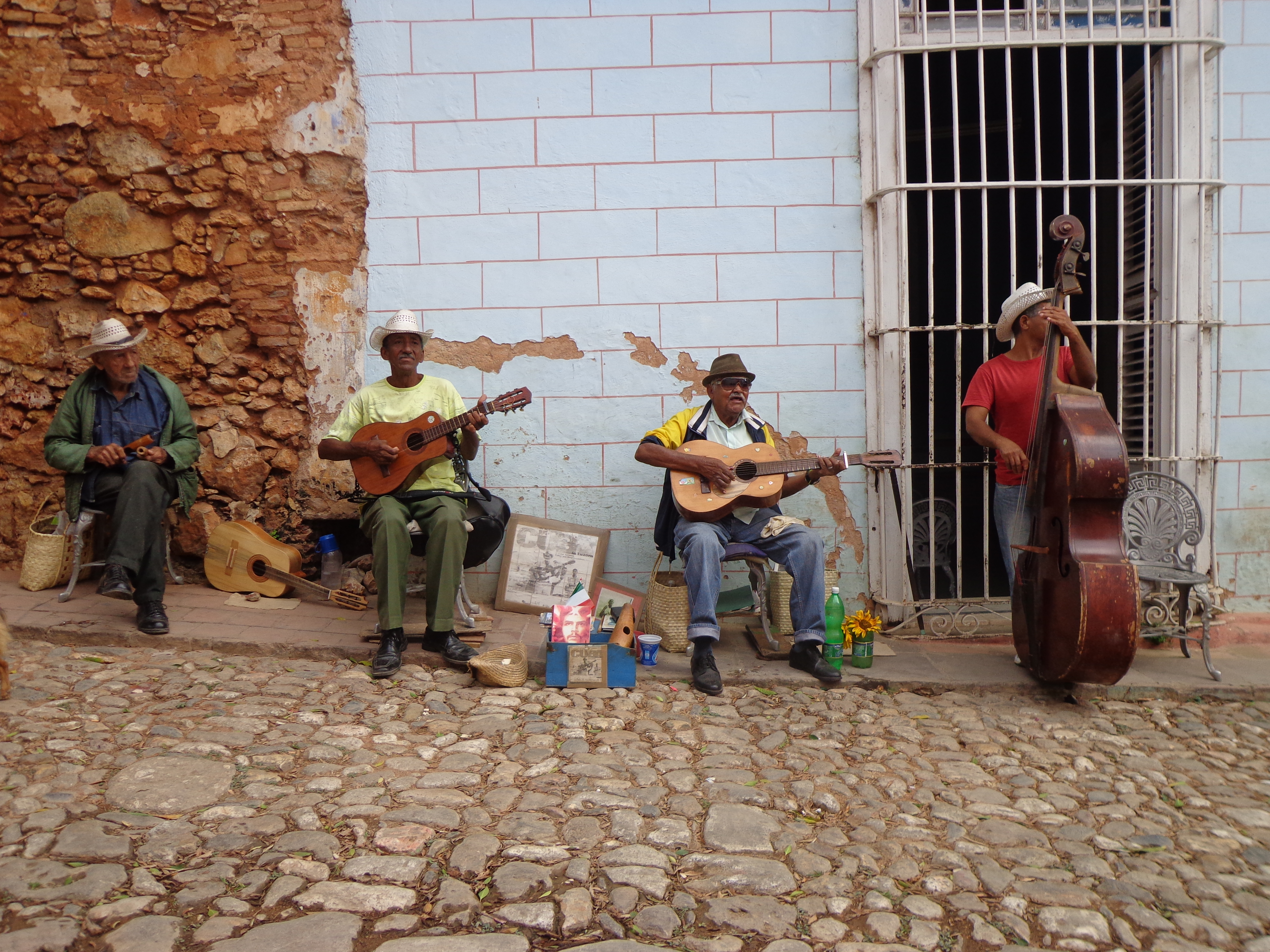 Een lange busrit brengt ons vanuit de vallei van Vinales naar Trinidad, een in vele reisgidsen afgebeelde neokoloniale stad met een plattegrond als een dambord. Onderweg zien we veel liftende Cubanen, zwaaiend met bankbiljetten. Het beperkte openbaar vervoer maakt liften tot een noodzaak. Overal ratelt muziek. Buiten het centrum is de hand van de toeristische economie afwezig. Kinderen volgen hoorbaar hun lessen op school, zwerfhonden liggen loom in de zon. Vanuit woonhuizen wordt lokale waar verkocht. Stemverheffingen: Cubanen maken er een sport van elkaar op zo’n groot mogelijke afstand toe te roepen. Zowel in- als buitenshuis. de publieke ruimte gaat naadloos over in de openstaande huizen zonder glas. Ook in deze stad woekert de verkrotting. We zien een paar mannen een uit de jaren ’50 carrosserie getild motorblok repareren. Wat men hier met simpele middelen voor elkaar krijgt is ongelofelijk. Cuba? No Problem!