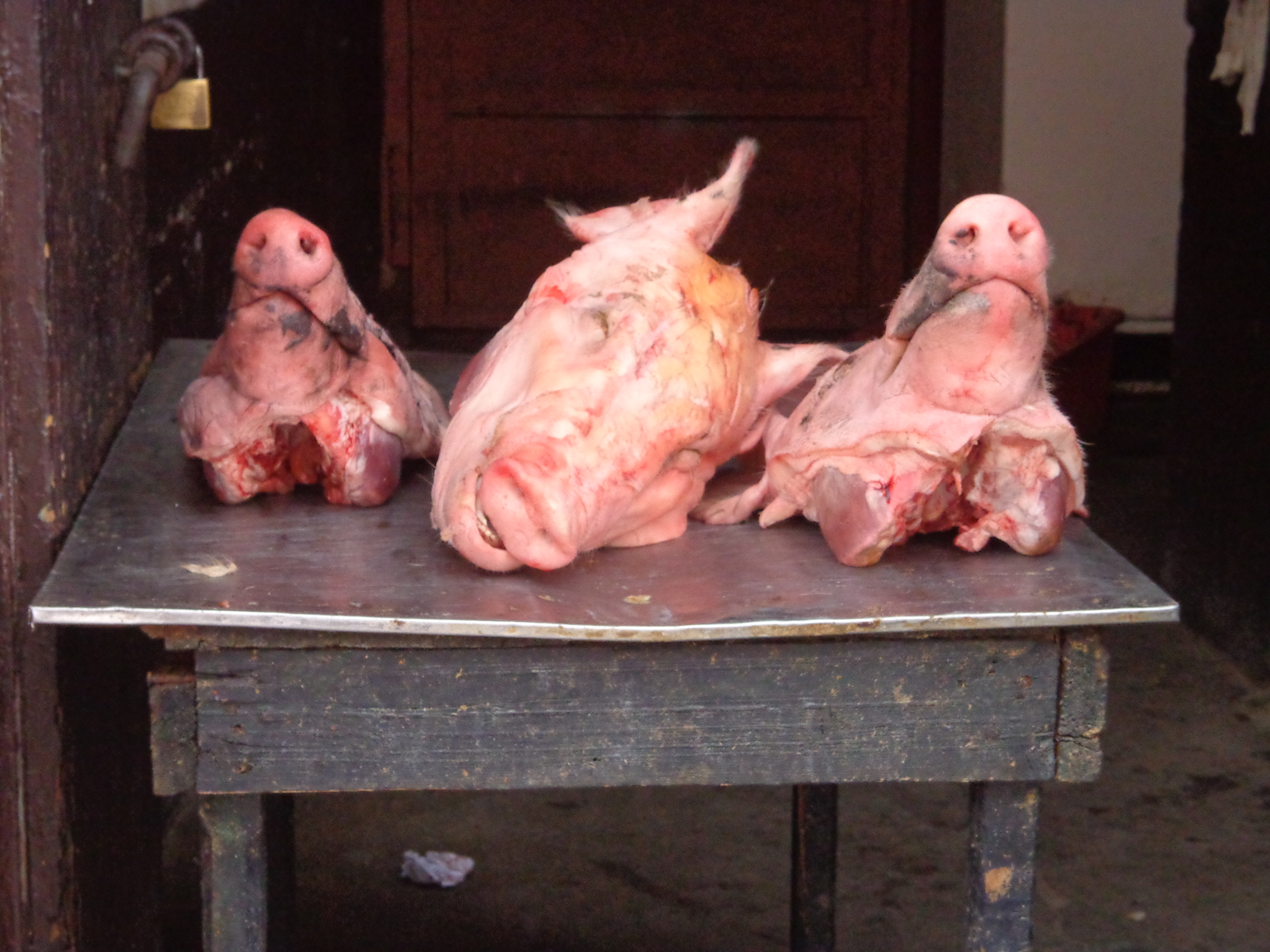 Buiten de historische kern manifesteert het leven zich in vele facetten. We zien een varkenskop aan een fietsstuur, passeren een school, waar de leerlingen naar ons zwaaien vanuit het raam en reiken naar op straat uitgestalde handelswaar. Later doe ik een was op de hand aan een dubbele gootsteen op het terras van onze verdieping. Met borstel en zeep. Onze verhuurster geeft lachend instructies; dat heeft ze nog nooit gezien, een man die de was doet. Dais lacht mee en kijkt tevreden toe.