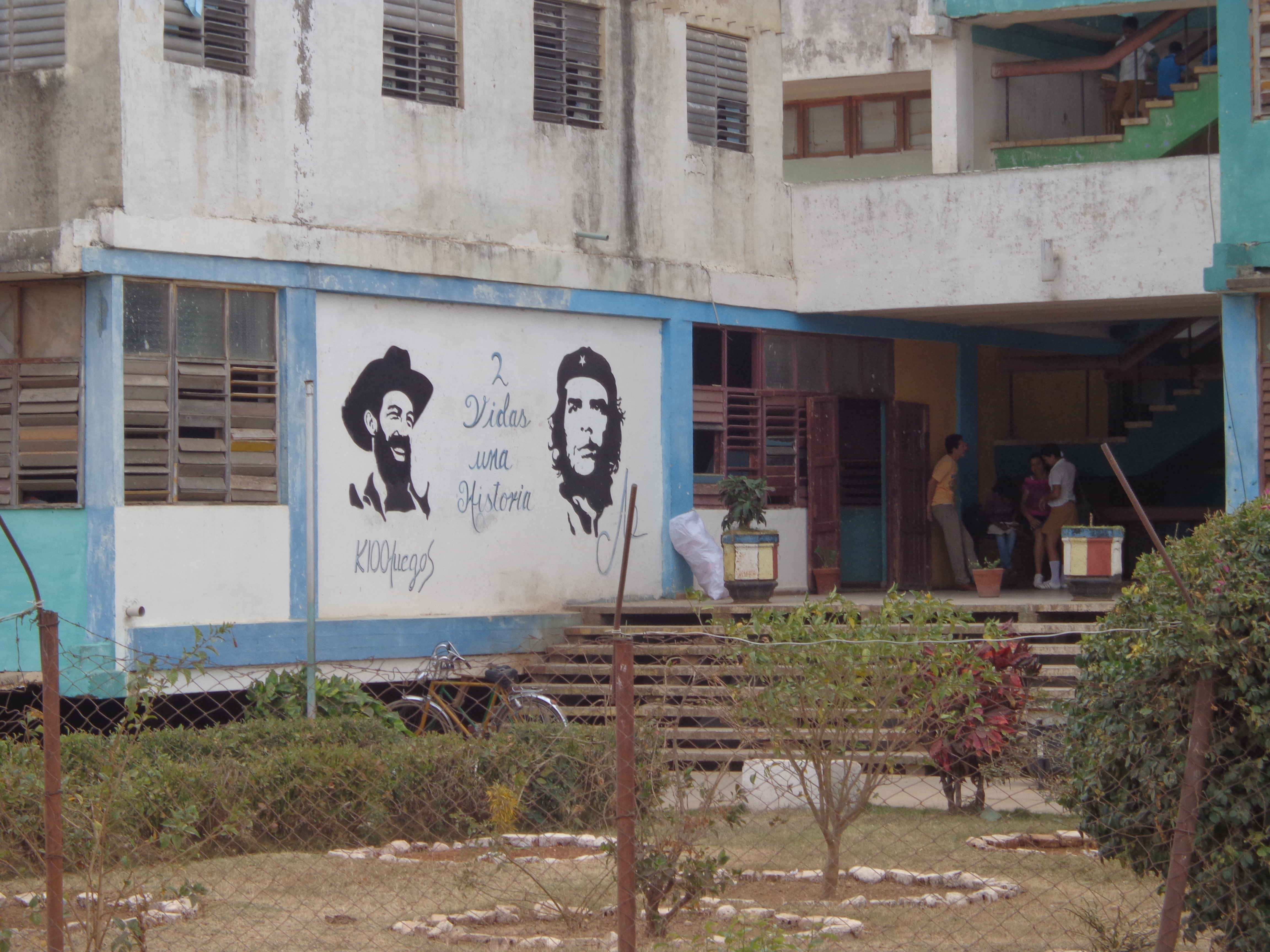 Een door de tijd behoorlijk aangetast schoolgebouw verrijst uit het landschap. Grote geschilderde portretten van Che en José op de schoolmuur. De communistische droom is uitgelopen op een karikatuur: weliswaar gratis onderwijs, maar geen geld voor het onderhoud van een schoolgebouw. Geen perspectief op een fatsoenlijk salaris en aangewezen op een inkomen dat te hoog is om failliet te gaan en te laag om redelijk van te kunnen leven. Stilstaan. Veel Cubanen weten echter meerdere bronnen van inkomsten te vinden. Naast een baan als ambtenaar, wordt taxi gereden, fruit verkocht, een casa verhuurd of in een bar gewerkt.